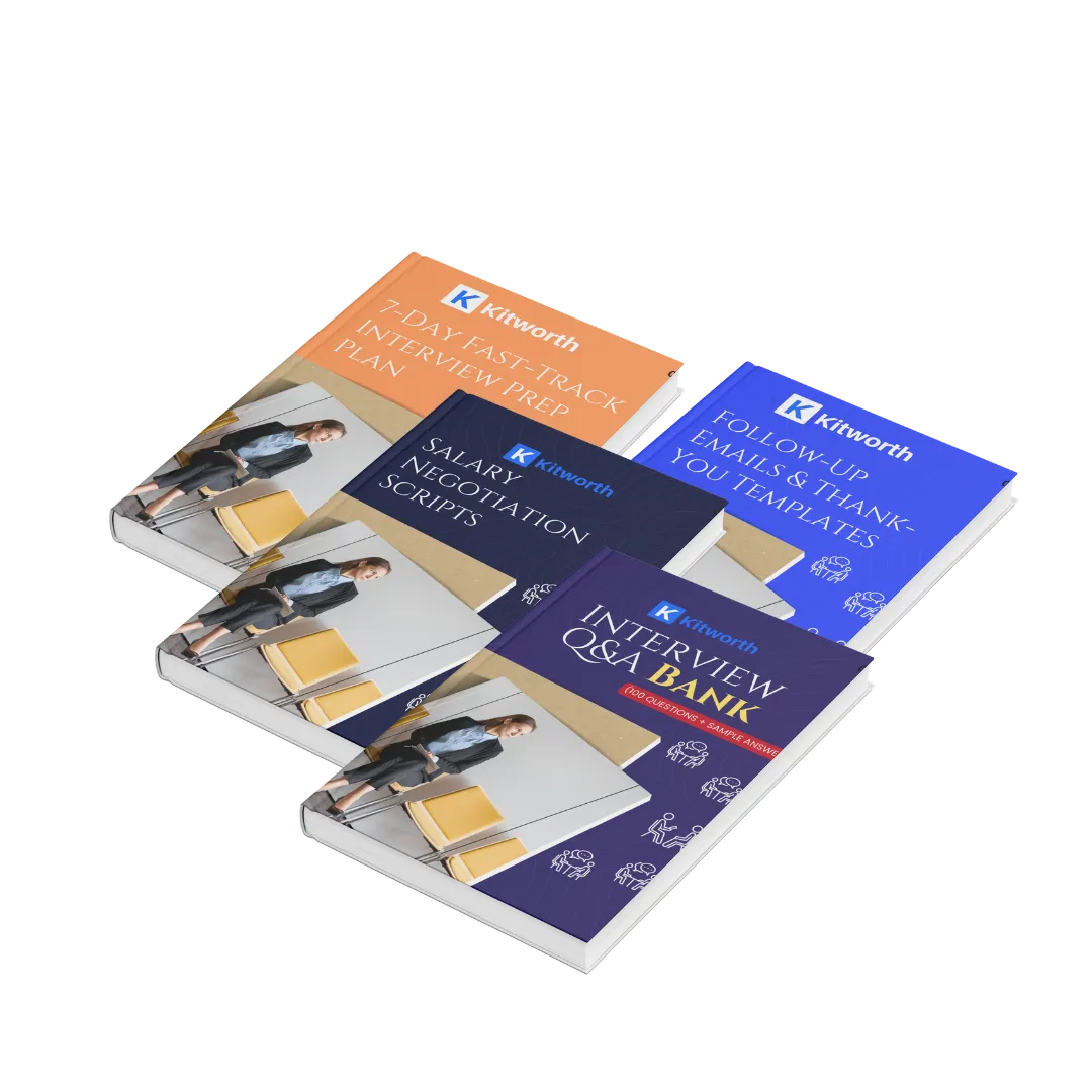 Stop guessing. Start winning. The Kitworth Interview Preparation Kit is trusted by 1,000+ job seekers worldwide to crack interviews, negotiate better salaries, and secure dream jobs — faster than ever before.